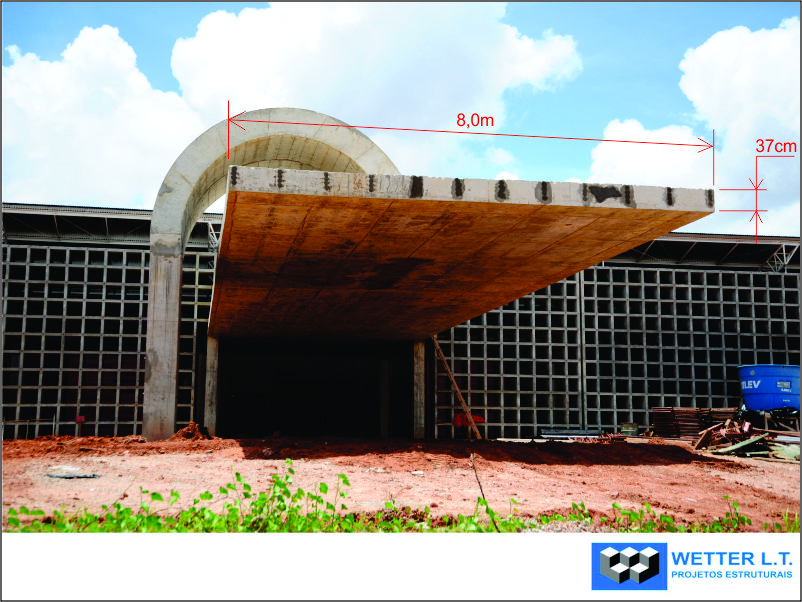 A estrutura foi concebida com vigas protendidas para vencer balanços...