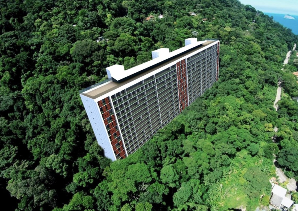 Edifício em concreto armado com cinco pavimentos, onde funcionará um hotel na serra de Guaramiranga.