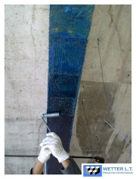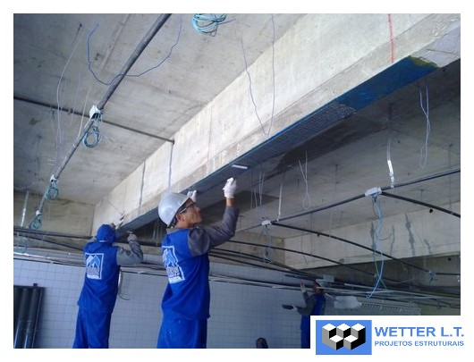 Intervenção estrutural com fibra de carbono na 1ª laje da Delegacia Regional do Trabalho em Fortaleza.