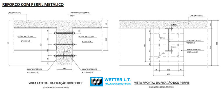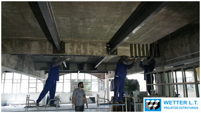 Devido à inexistência do projeto estrutural, idealizamos um novo modelo estrutural com base em um levantamento e observações “In loco”, levando-nos a adotar uma solução com fibra de carbono, perfis e consoles metálicos.