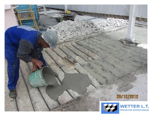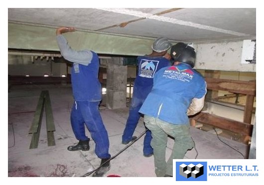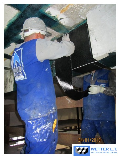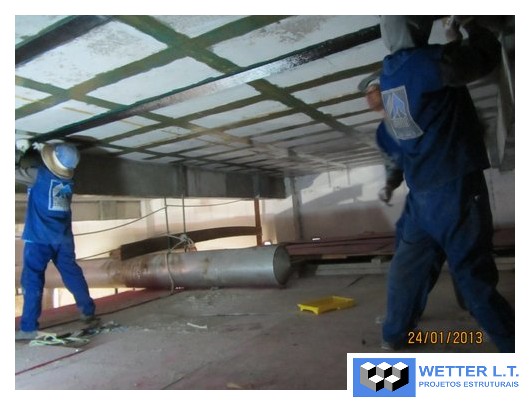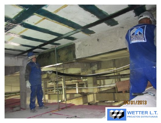 Aplicação de 690m2 de fibra de carbono MBrace CF 130 e perfis metálicos nas lajes do HRU, assim distribuídas: