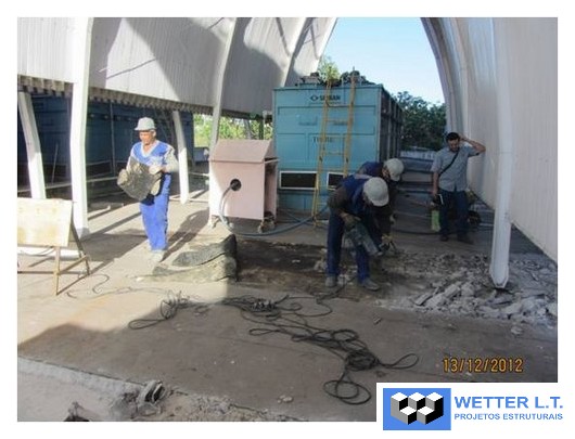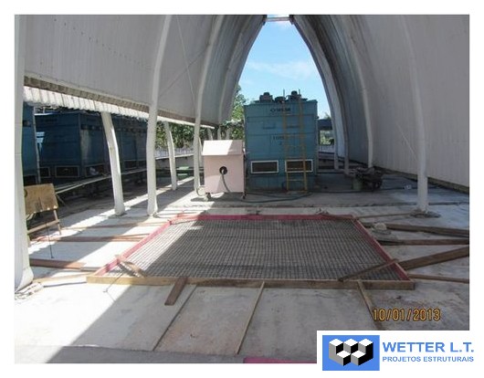 – 60m2 na laje do pavimento técnico, onde foi projetadas a fixação dos isoladores acústicos para suportar 4 chillers de 10ton cada.